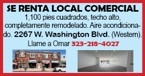 SE RENTA LOCAL COMERCIAL 1,100 pies cuadrados, techo alto, completamente remodelado. Aire acondicionado. 2267 W. Washington Blvd. (Western). Llame a Omar 323-218-4027